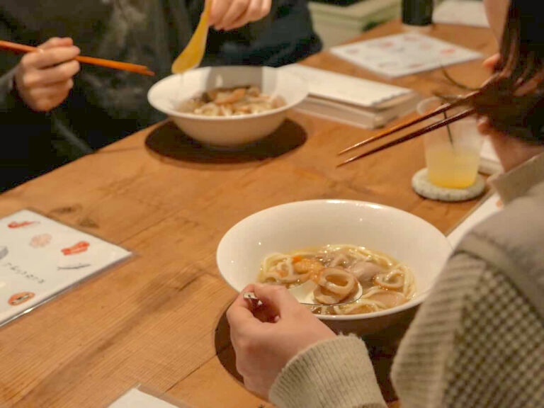 2部では「みんなのごはん」に掲載されているかほりさんのレシピから「のっぺい汁うどん」をご用意させていただき、優しい味のおうどんでお腹を満たしてから、本の話から少し離れてお二人の生き方、考え方について話を広げていきました。